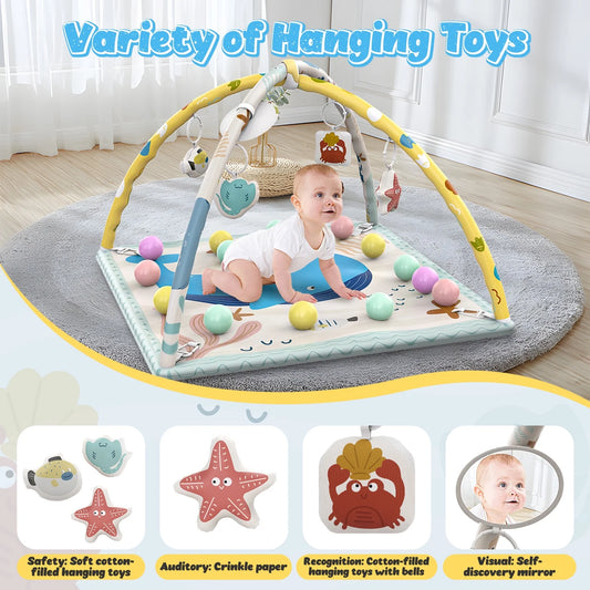 5-In-1 Baby Gym & Play Mat, Tummy Time Toys with Sensory Toys & 18 Balls for Newborns and Infants 0-12 Months, Whale