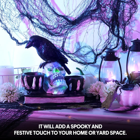 Halloween Skull Decorations with LED Lights, Halloween Candlesticks, Raven Decor, Halloween Decor